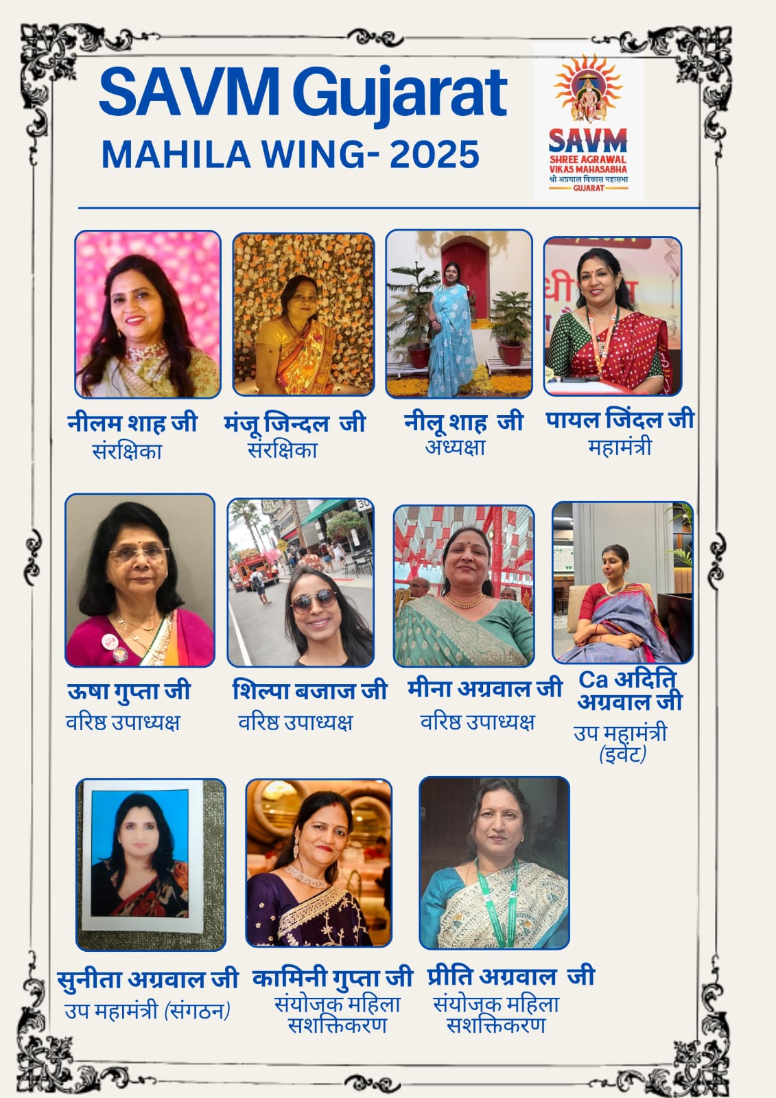 | 15 | नूतन अग्रवाल जी भरूच | मंत्री संगठन | 9998980439 | | | | | | |